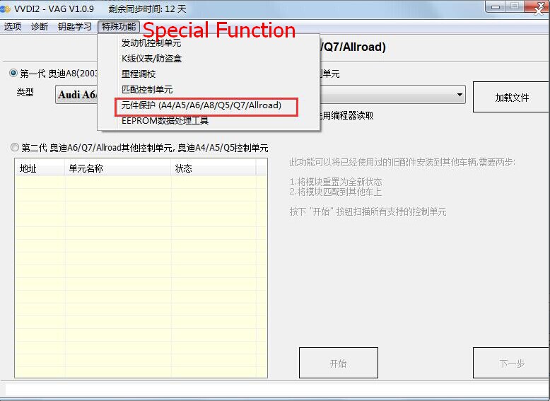 4). Component security function of VVDI 1, it will be valid after you open the authorization for pin, mac and CS reading authorization. For VVDI 2(VVDI II),you can directly use component security function. Go to special function. you will find the component security option for A4,A5,A6,A8,Q5,Q7,Allroad.