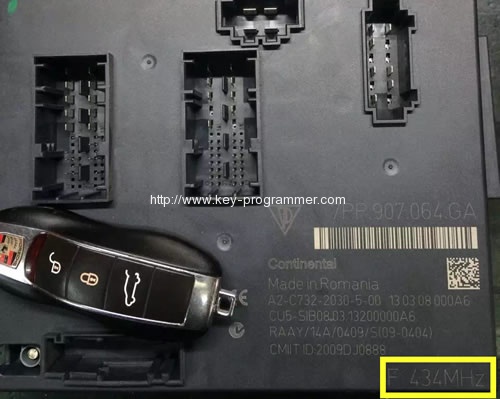 The Porsche BCM computer is located under the dashboard. There are 3 types of BCM frequency which stand for correspondent key frequency, including 315M, 433M and 434M . They cannot be replaced by each other. The key can be also divided into smart key and semi smart key.