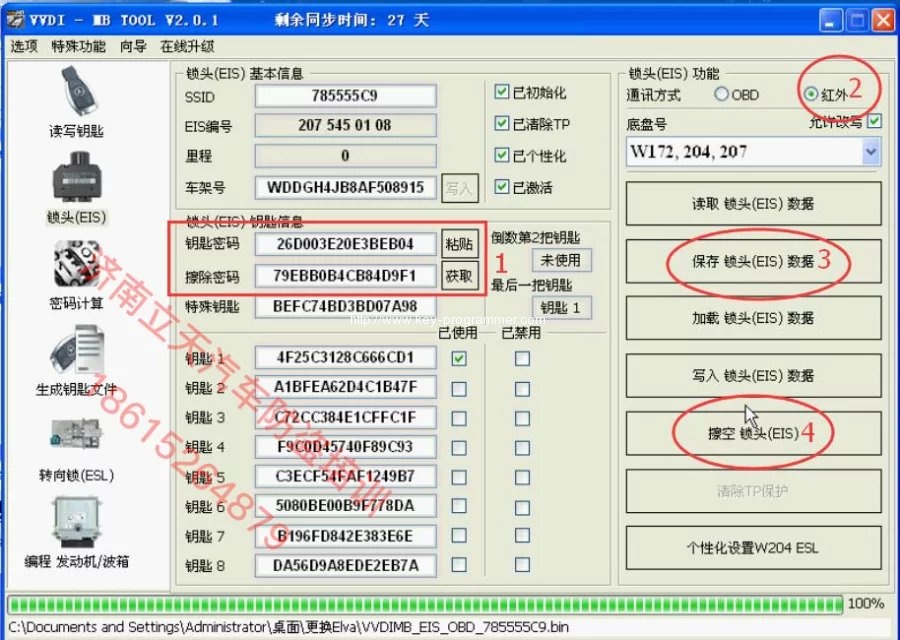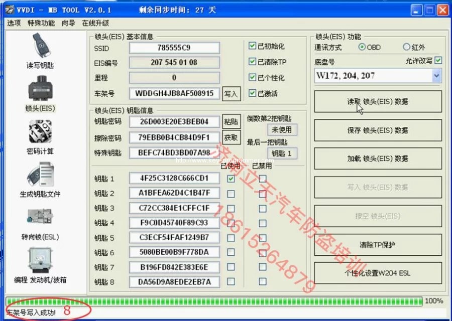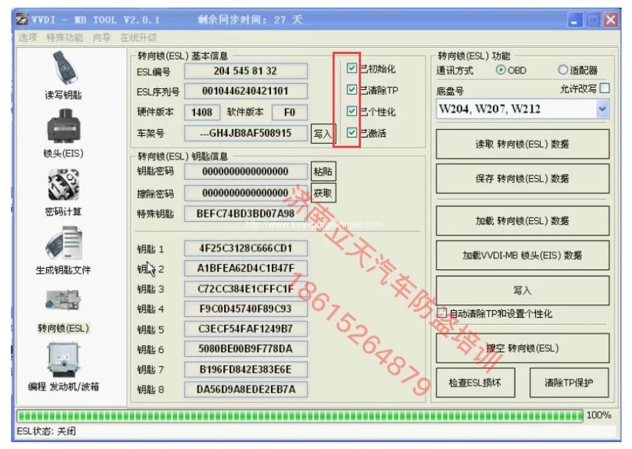 After above steps, all EIS and ESL status checkboxes will be tick except the “Activated” checkbox. Insert the original car key hen EIS and ESL is activated. Now you use VVDI MB tool to renew ESL successfully.