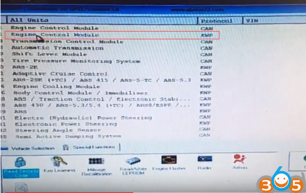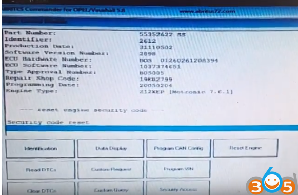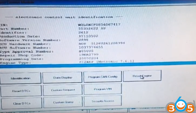 FVDI2 Opel will display vehicle information, VIN, part number, engine type etc