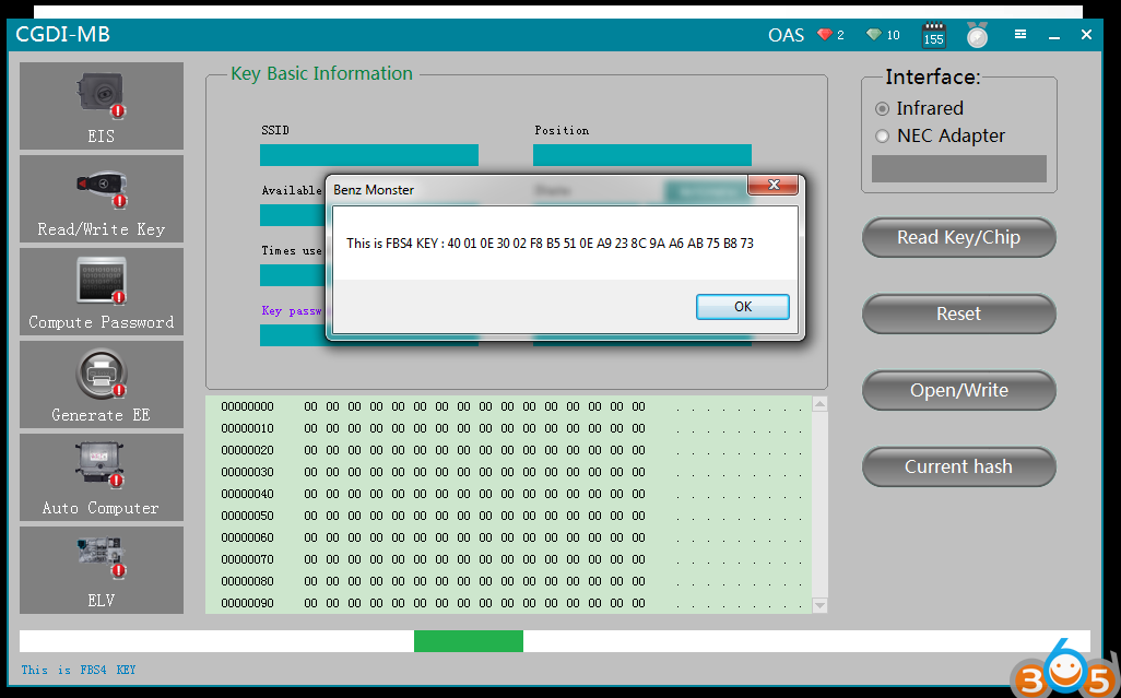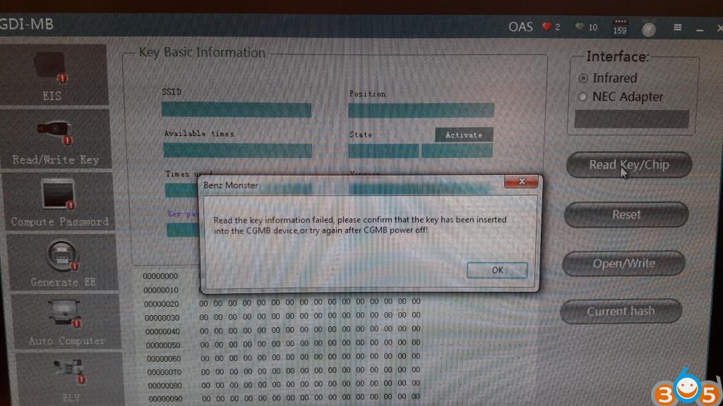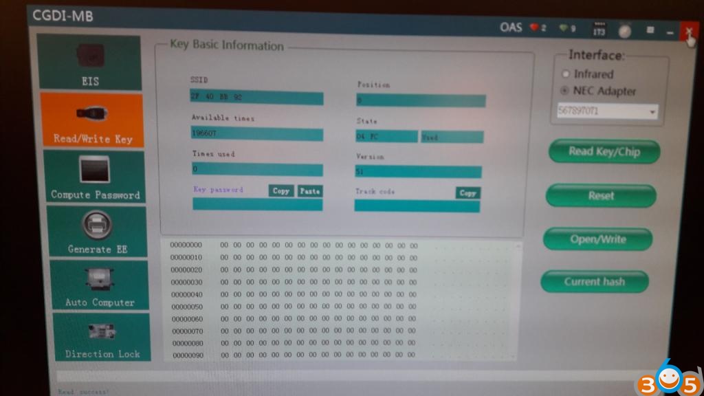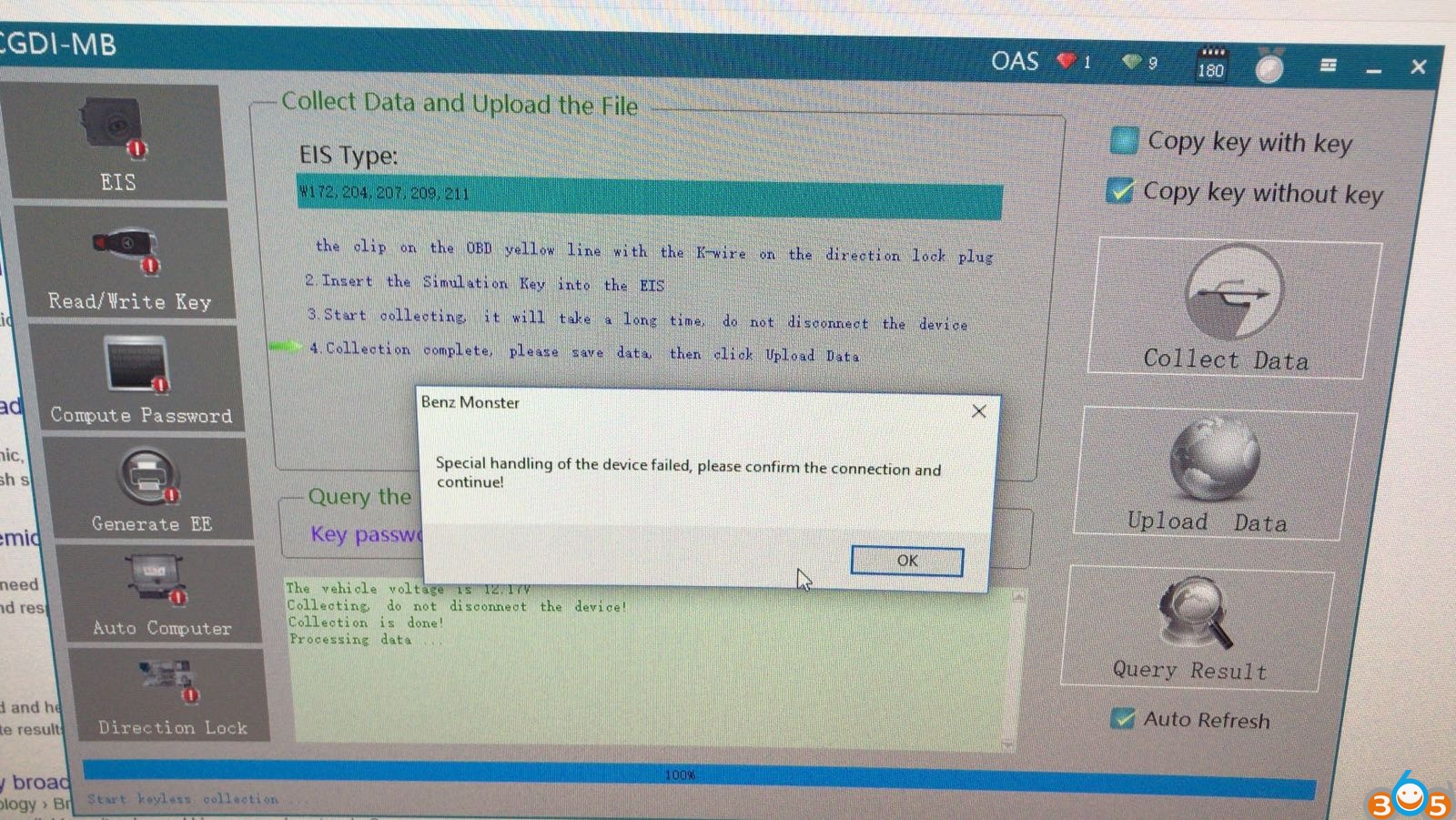 Just done spare for Benz G500 year 2000 imported from Dubai. EZS 203, collect data is long about 17mn. All done in 25mn. But big problem with BE key, Only one can start and remote don’t work. Finally write NEC original key.