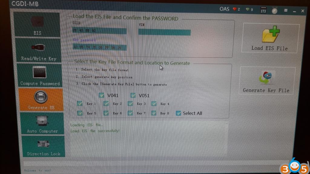 Read EZS, calculate PSW, add BE key. All done in 17mn by side the road
