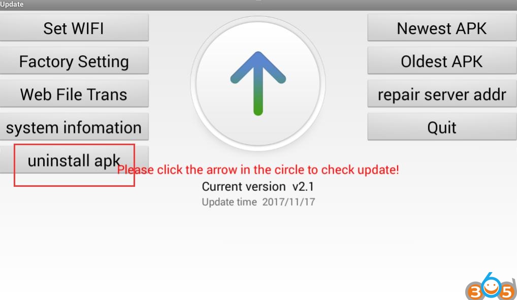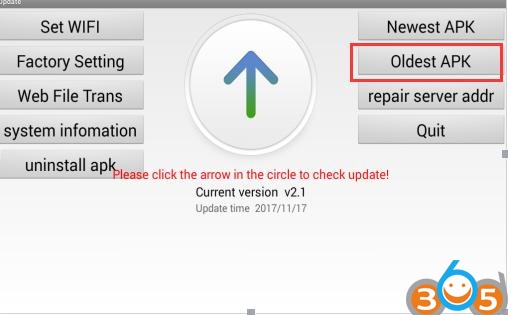 Step 4: When the following interface appears, please click on the button “Oldest APK” in the red box to install factory-set/default APK.