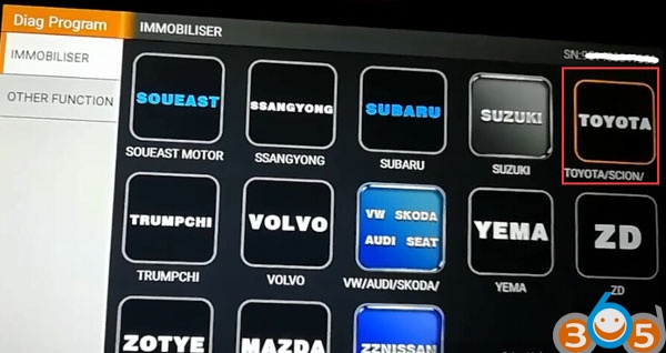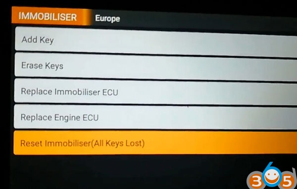 Select Diag Program->Immobilizer->Toyota->Toyota/Scion/Lexus V32.05->Immobiliser->Type 2 (72G)->Europe->Reset immobilizer (All key lost)
