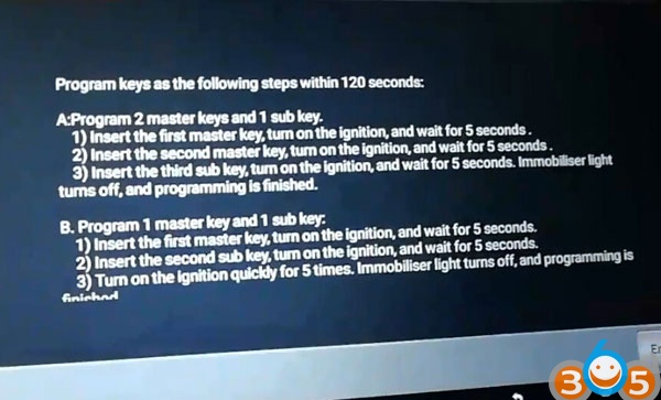 3) Insert the third sub key, turn on the ignition, and wait for 5 seconds, immobilizer indicator turns off, and programming is finished.