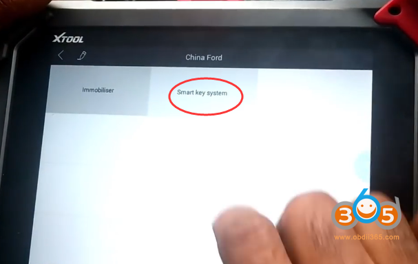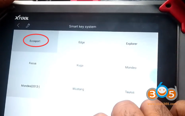 In X100 PAD2, select Immobilizer->Ford->China Ford->Smart Key System->EcoSport->Add a smart key