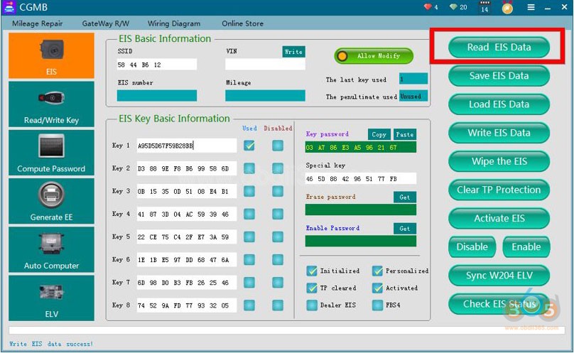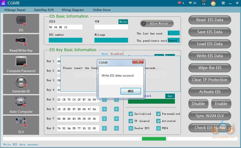 W211 EIS original rolling code is repaired by CGDI MB successfully.