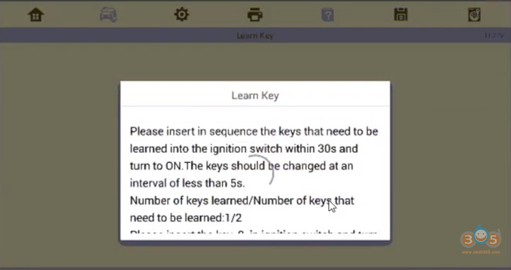 Insert in sequence the keys that need to be learned into ignition switch within 20s and turn to ON.