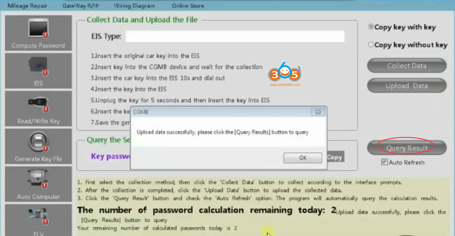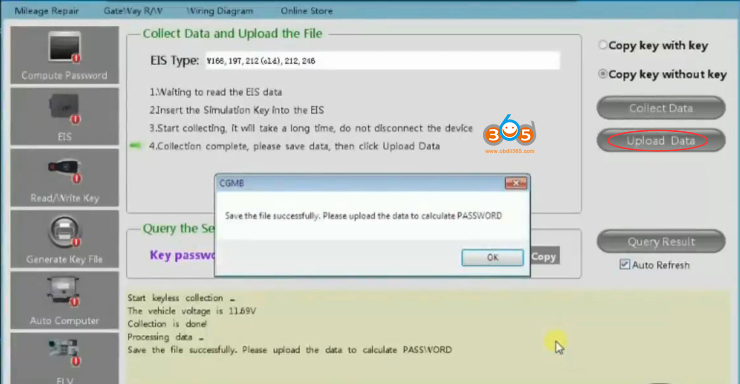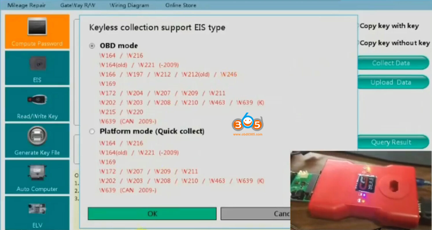 Then go to Compute Password- Copy key without key- Collect data-OBD mode
