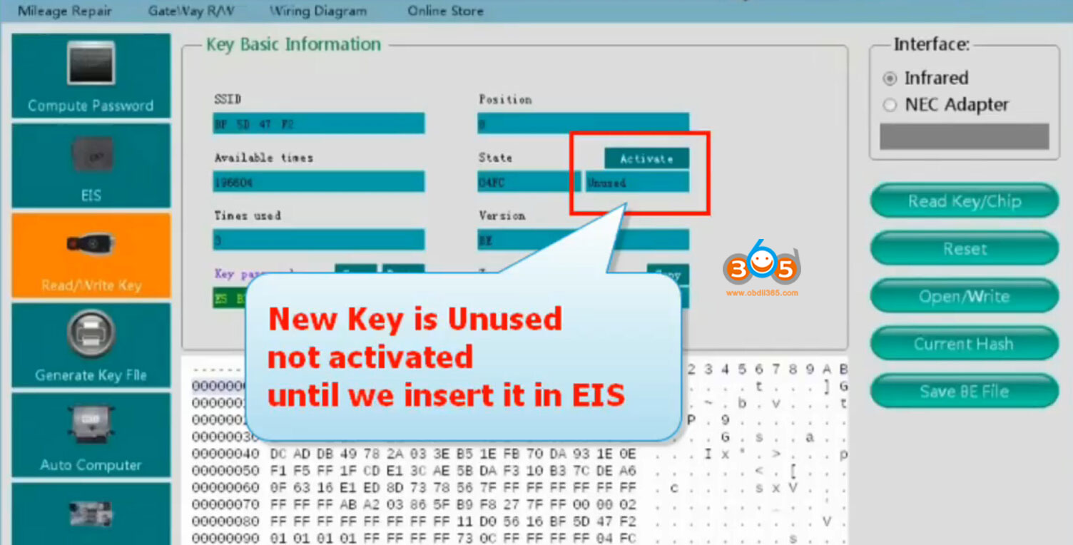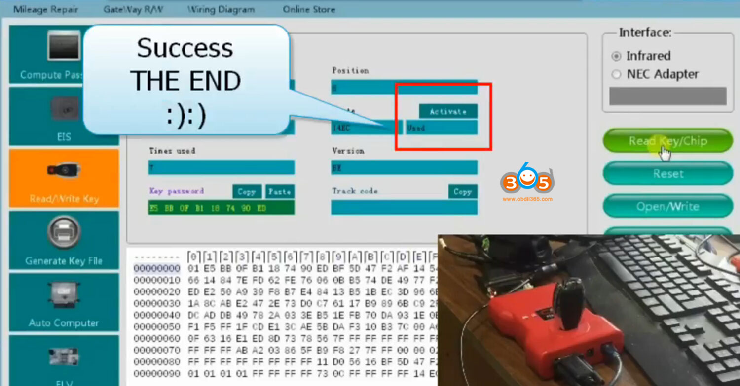 Select Read/Write Key function- Read Key/Chip