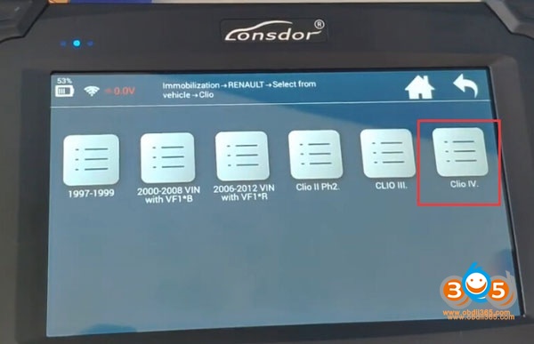 In K518, select Renault->Select from vehicle->Clio->Clio IV->2012 up->All key lost