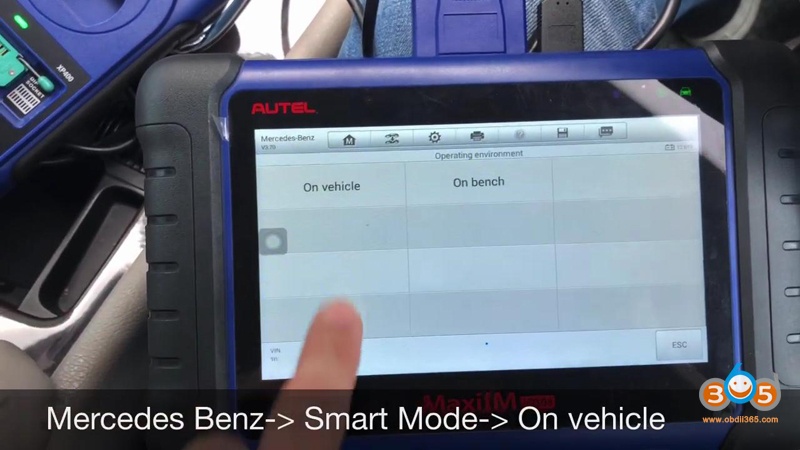 On Autel MaxiIM IM508, tap “Mercedes Benz -> Smart Mode -> On vehicle”.