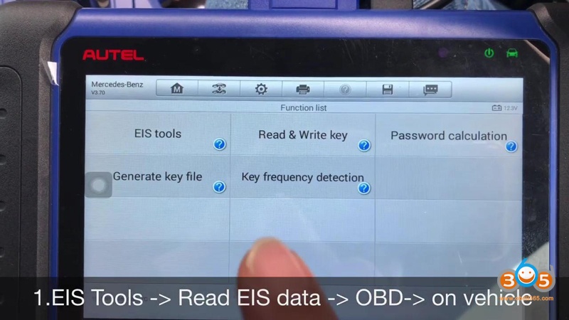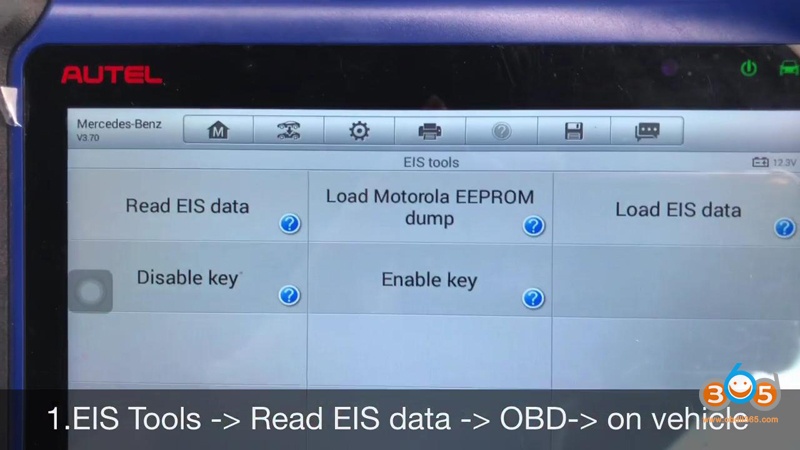 1.EIS Tools -> read EIS data -> OBD -> on vehicle