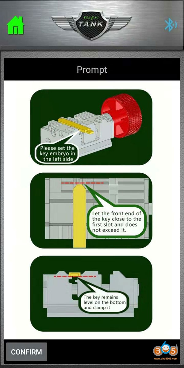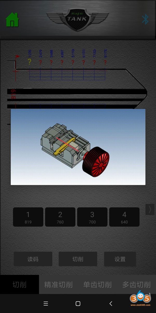 2M2 Magic Tank key cutting machine is easy to learn,easy to use,easy operate.When you use this machine to decode any key blade, the machine will remind you how the clamp the blade & key blank step by step, App has manual every step.