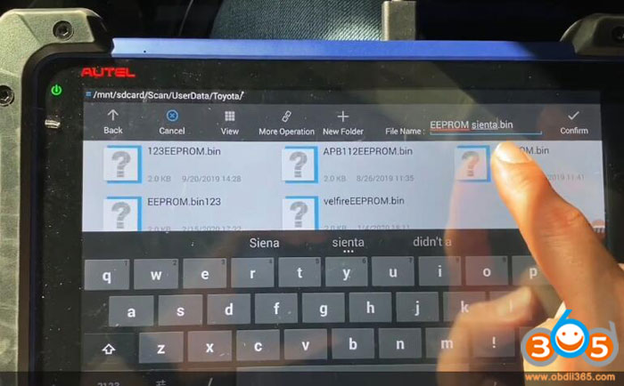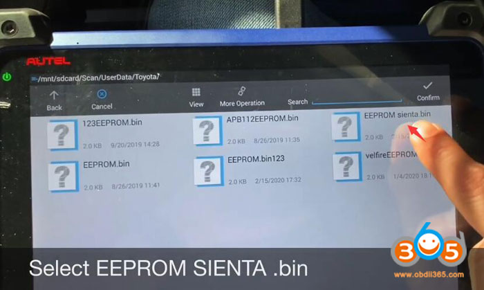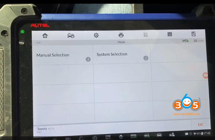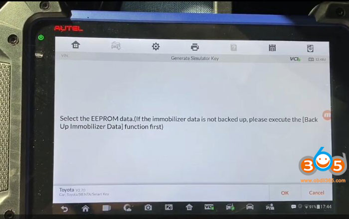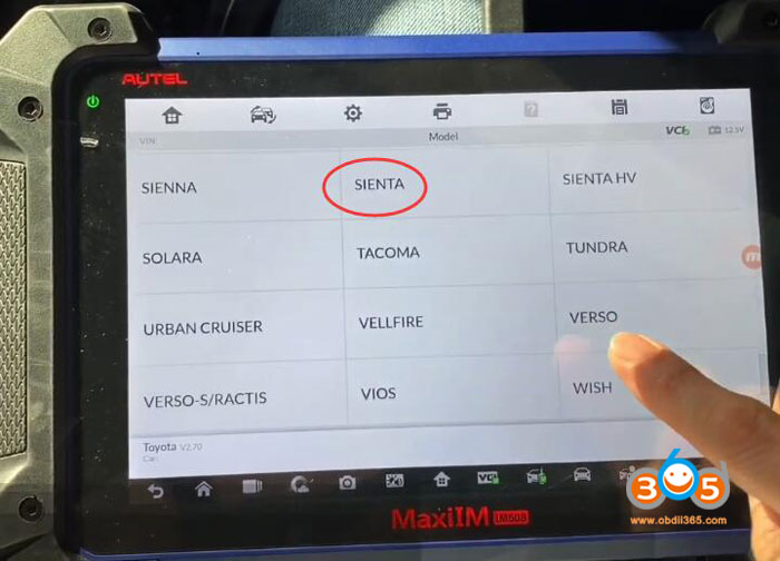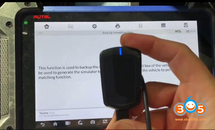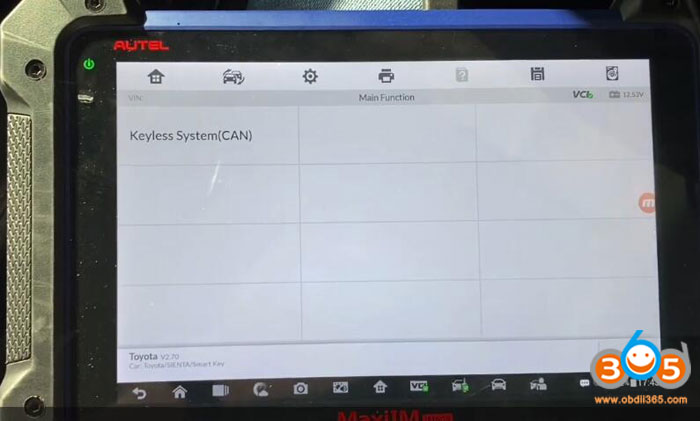 Select IMMO->Toyota->Manual Selection->Other->SIENTA->Smart Key->Keyless System (CAN) ->Backup Immobilizer Data