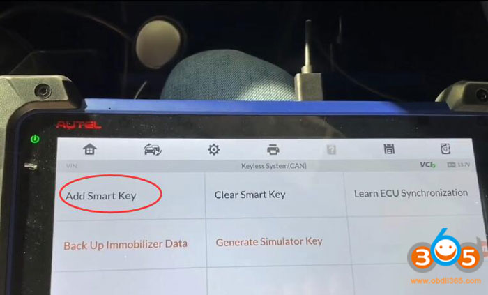 Choose Add Smart Key menu and follow Autel IM608 prompts to add new original smart remote until succeed.