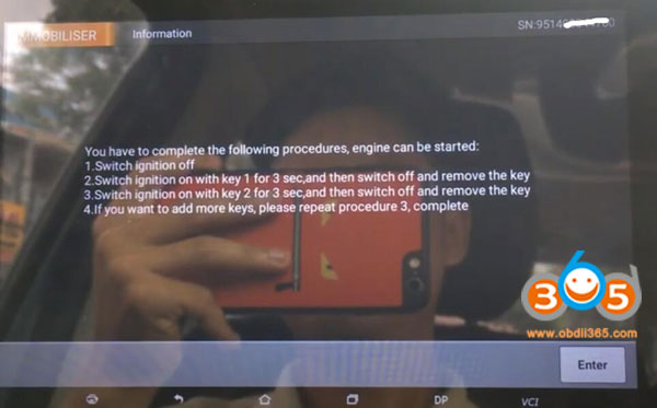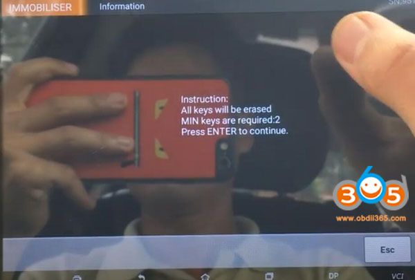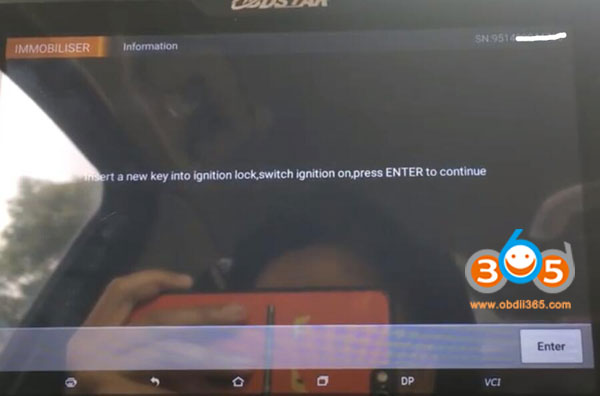 Insert a new key into ignition lock, switch ignition on, Press ENTER to continue
