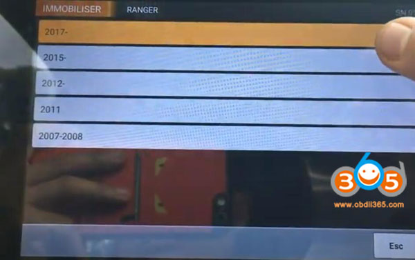 Select Immobilizer->Ford/Lincoln->Ford->Immobilizer->Ranger->2015 up->Type 1(Priority Select)->All Keys Lost
