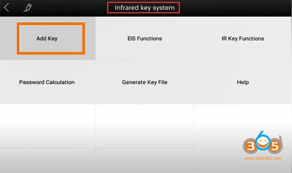 Select [Immobilization] -> [BENZ] -> [Infrared key system] -> [Add Key]