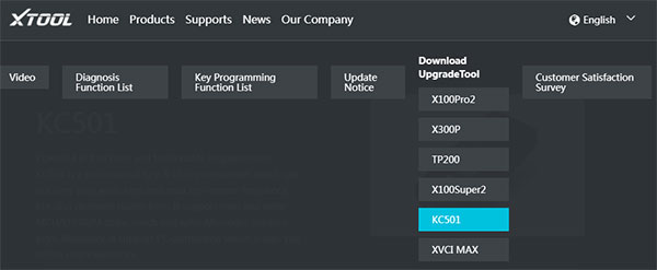 Select [Supports]-> [Download Upgrade Tool]-> [KC501]