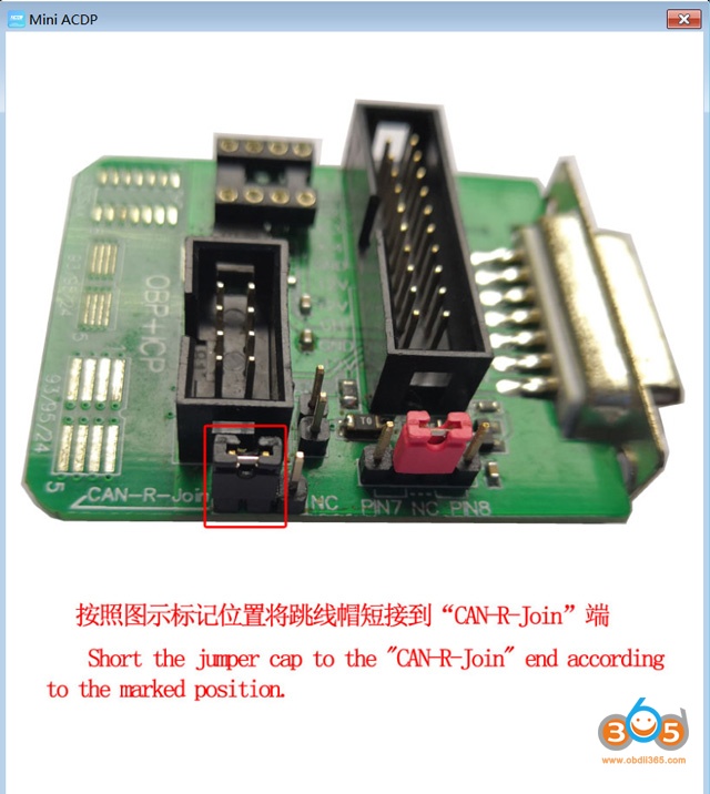 Step 3. Short the CAN termination resistor on the OBP+ICP adapter to the “CAN-R-Join” terminal.