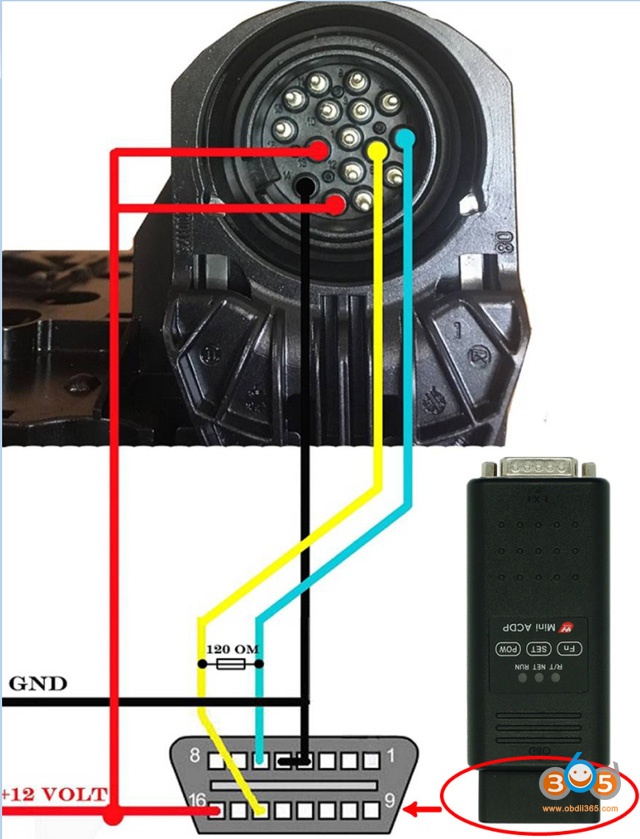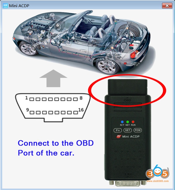 Option 2: Connect ACDP with vehicle OBD-II port.
