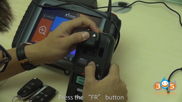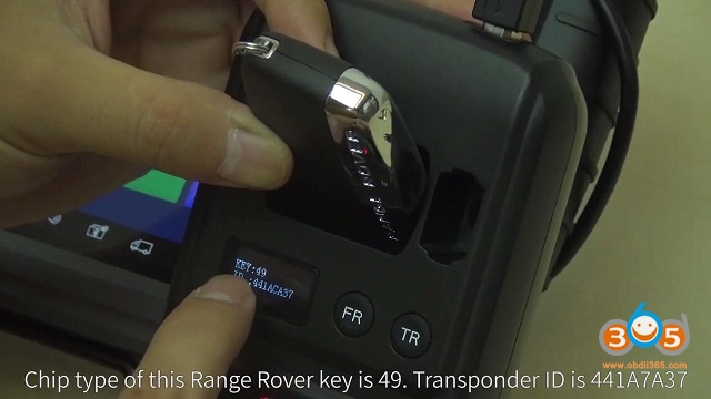 Place the car key close to the transponder area->Press the “FR” button->read data