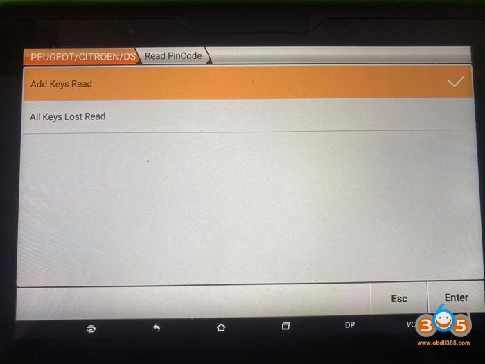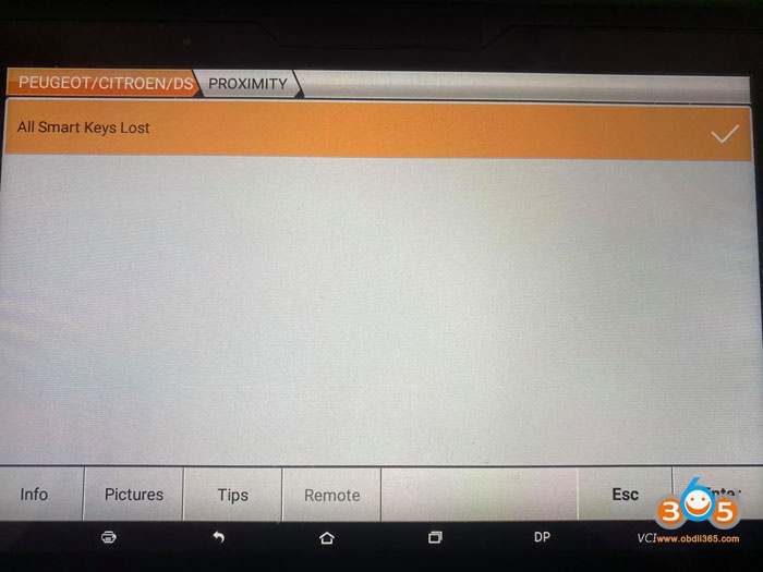 Enter from Peugeot V32.39>Peugeot>Adds keys read>Proximity>All smart keys lost