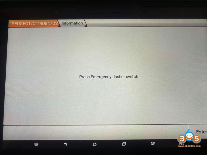 Press Emergency flasher switch and follow x300 dp plus prompts until succcess