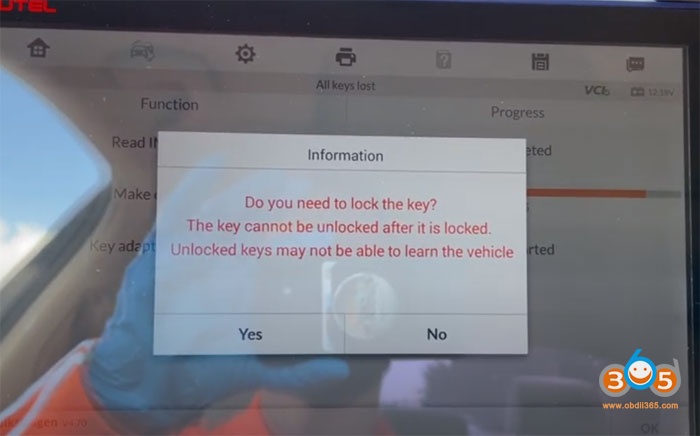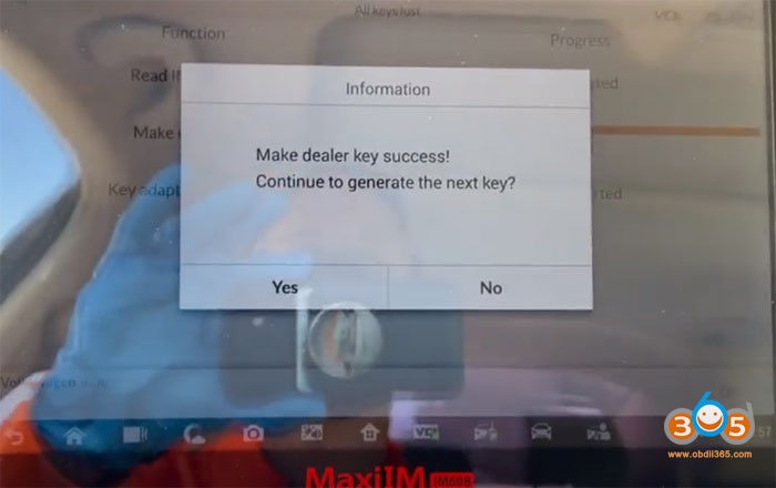 You can choose to generate next key or not. If yes, put a blank key in the programmer keyhole and follow IM608 prompts to complete key generation. If NO, jump to the last step.