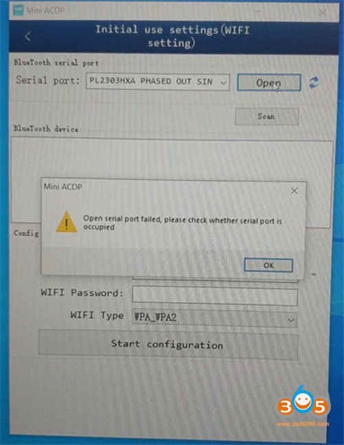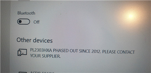 There was something wrong with the Yanhua Mini ACDP Bluetooth connection on Windows 10 operating system. When configuring WiFi setting of the Bluetooth adapter, ACDP reported the error “Open serial port failed, please check whether serial port is occupied”, and Windows also found that “PL2303HXA PHASED OUT SINCE 2012” as below.