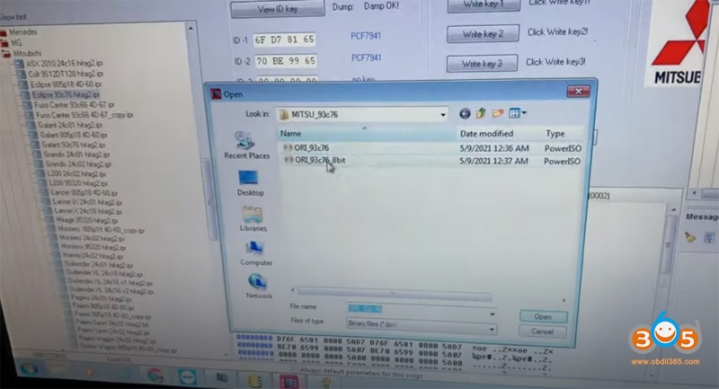 in iProg+ clone software, selecct Mitsubishi-Eclipie 93C76 hitag2