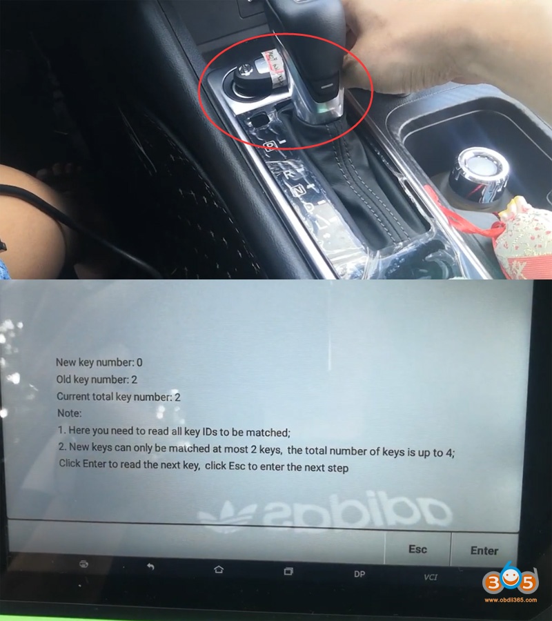 Place 1st key above ignition switch again