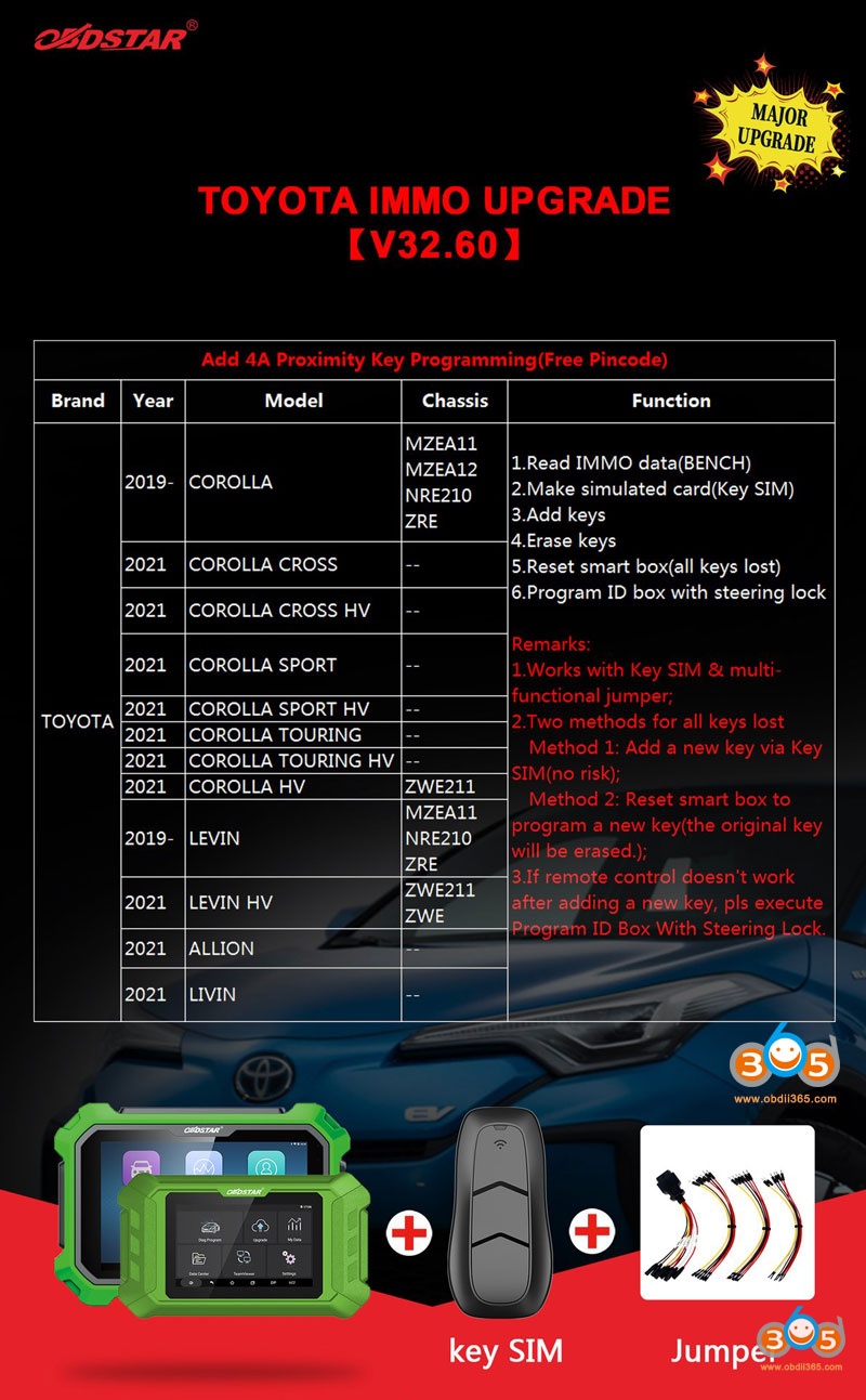 OBDSTAR released new Toyota immobilizer software V32.60 on Nov. 30th, 2021.