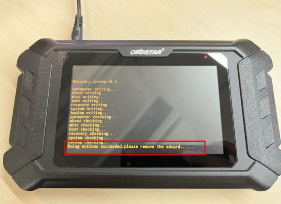 4. When screen says ‘Doing Activation Succeeded, please remove the SDCard’, remove the TF card from the device, the device will automatically reboot and enter the system