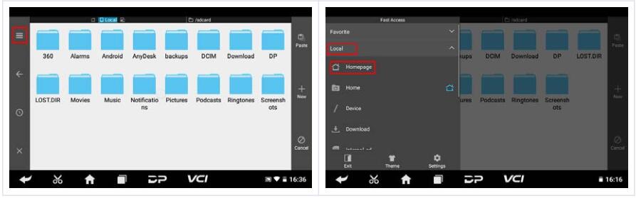 2. Click the Main menu button on the main screen, select and enter ES File Manager