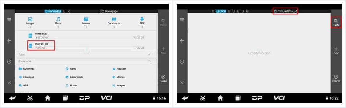 5. Select external_sd (TF card), and then click the Paste button. Wait for the copy to complete. After the firmware upgrade is complete. Just overwrite the DP directory from the TF card to the device.