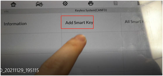 1. Go to immo menu select the vehicle ….>Keyless system(CANFD) >add key/ all key lost.