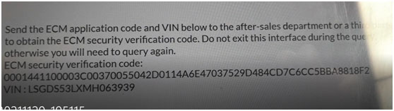 3. Send the ECM application code and VIN to after-sales department or a third party (i.e NASTF ) to get obtain ECM security verification code
