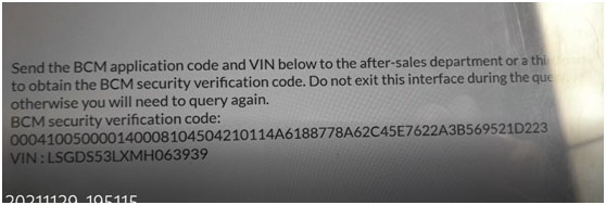 5. Send the BCM application code and VIN to after-sales department or a third party to get obtain BCM security verification code.
