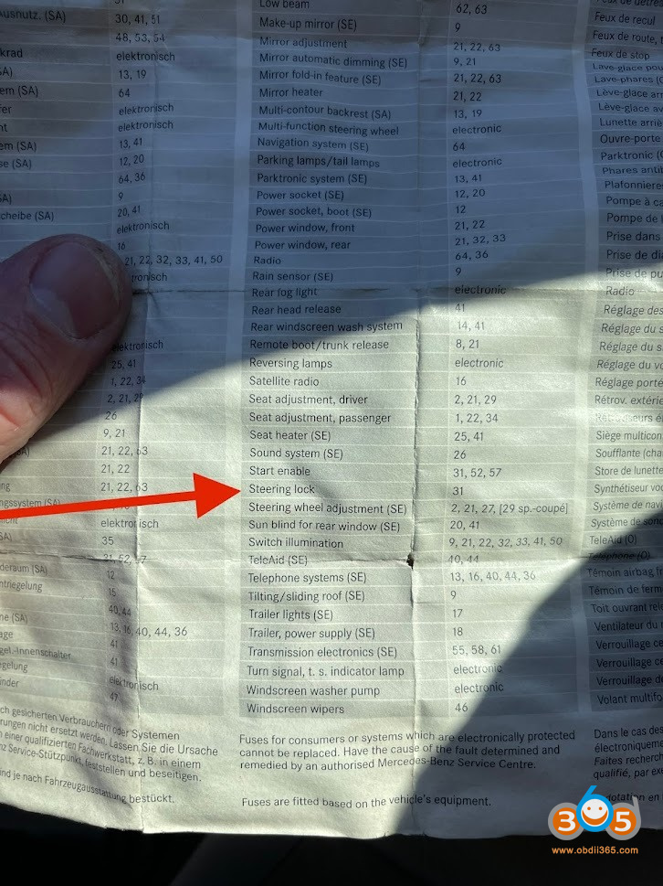 I used the small paper sheet that Mercedes left conveniently folded up in the fuse compartment to identify the correct fuse.