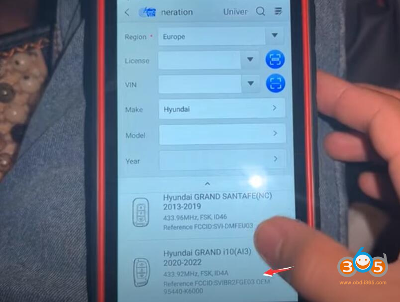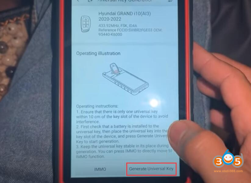 Select Universal Key function->Hyundai-> Hyundai i10 Grand i10 2020-2022