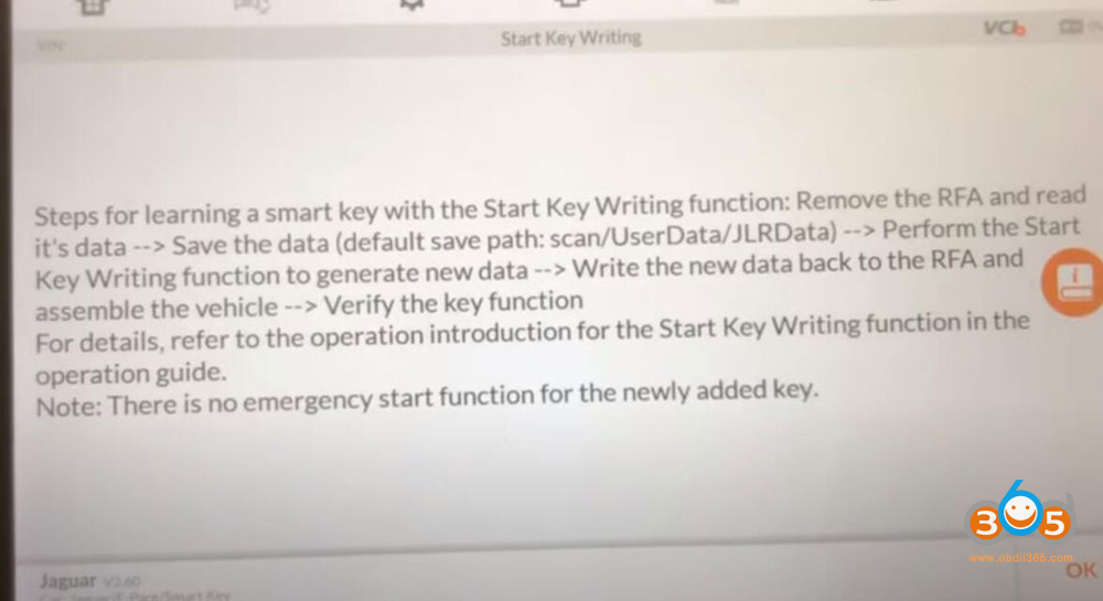 Then select Start Key Writing function