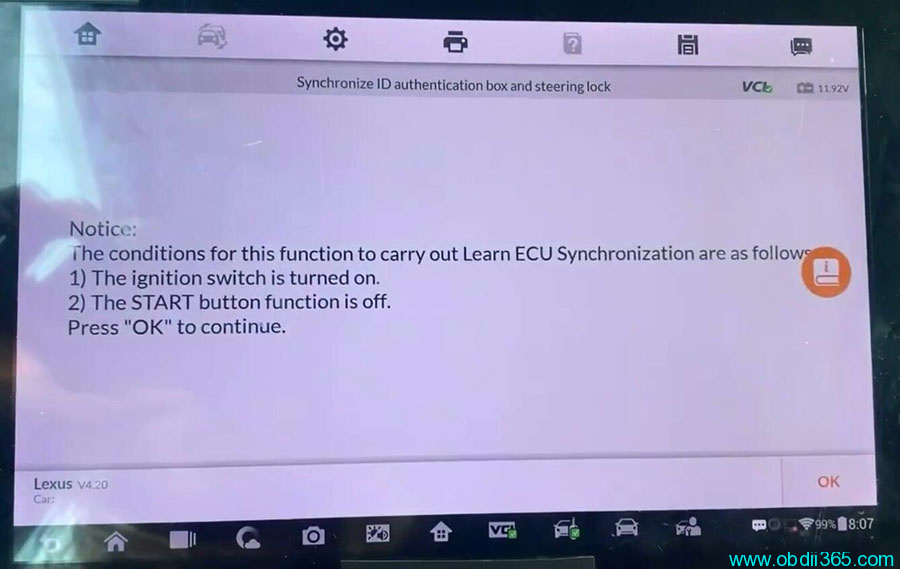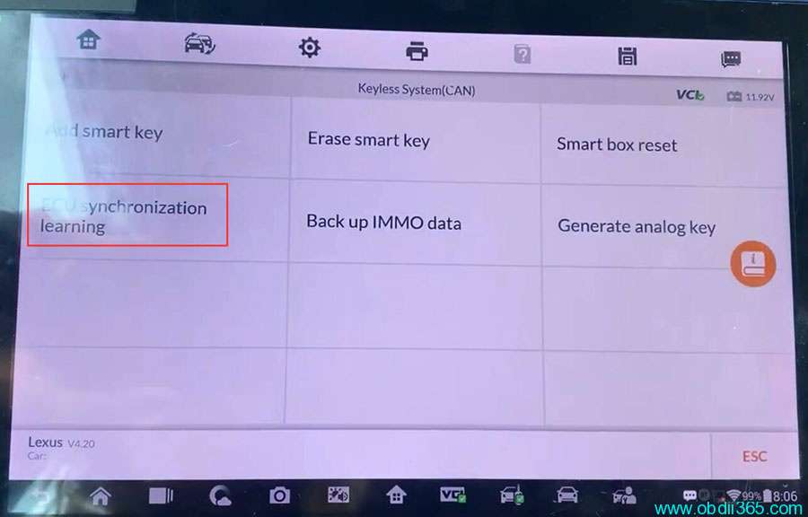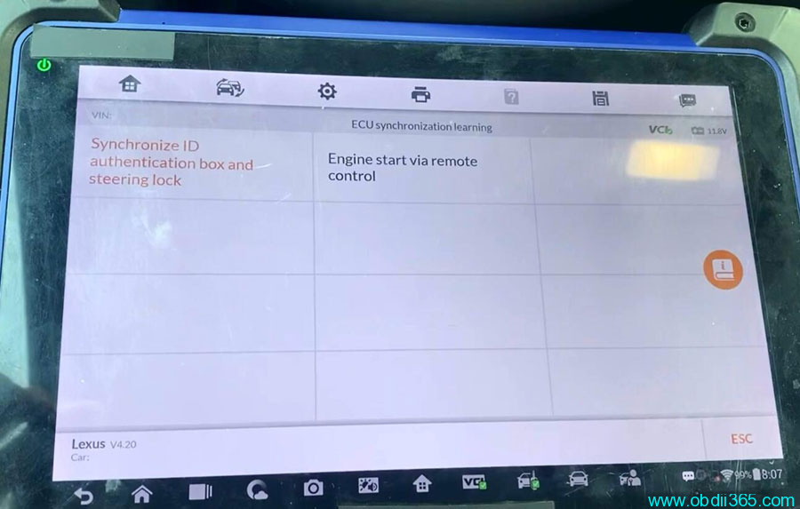 Go to Immobilizer->Lexus->Select selection->Keyless System->Keyless System (CAN)-> ECU synchronization learning->Synchronize ID authentication box and steering lock.