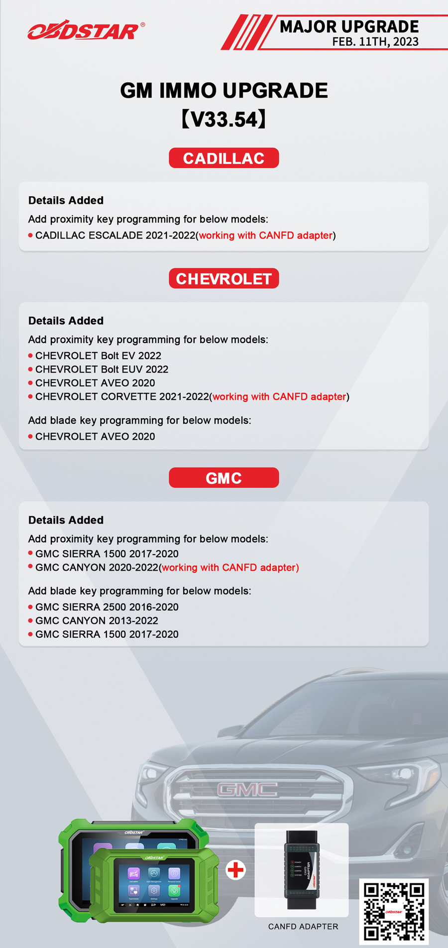 OBDSTAR released new GM IMMO software V33.54. Adding the following new GM models: