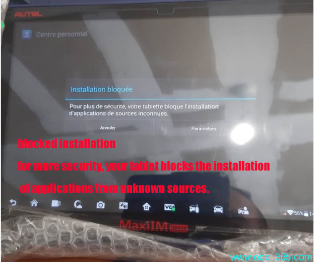 I try to install Autel MaxiIM IM608 apk, but it does not allow me. It gave error “blocked installation, for more security, your tablet blocks the installation of applications from unknown sources.”