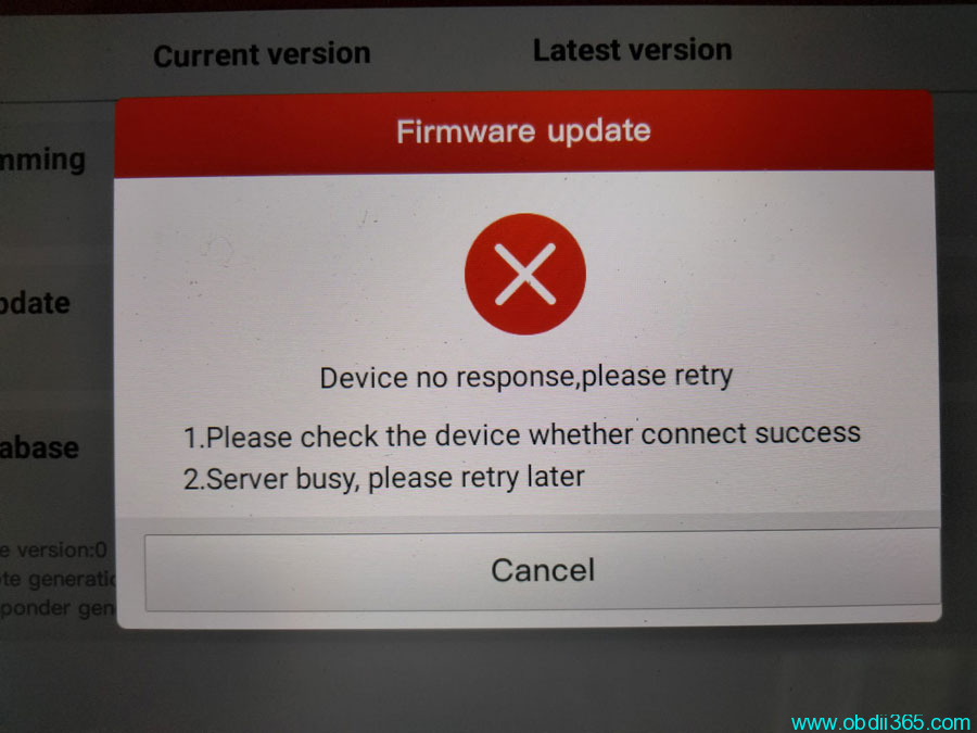 I tried to update the new key programmer software and firmware on the Launch X431 IMMO plus, but failed. the tablet gave error device no response.