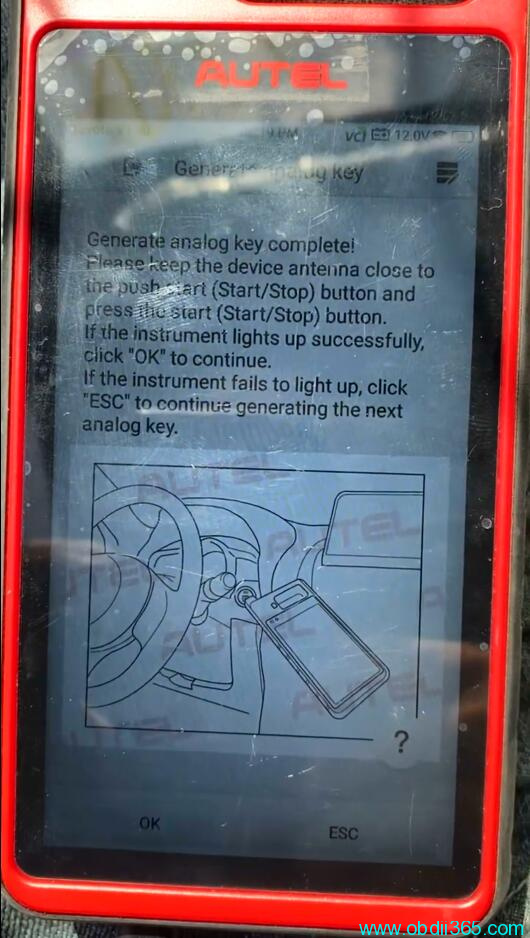 Keep Autel KM100 close to the start button, the buzzer will beep once.