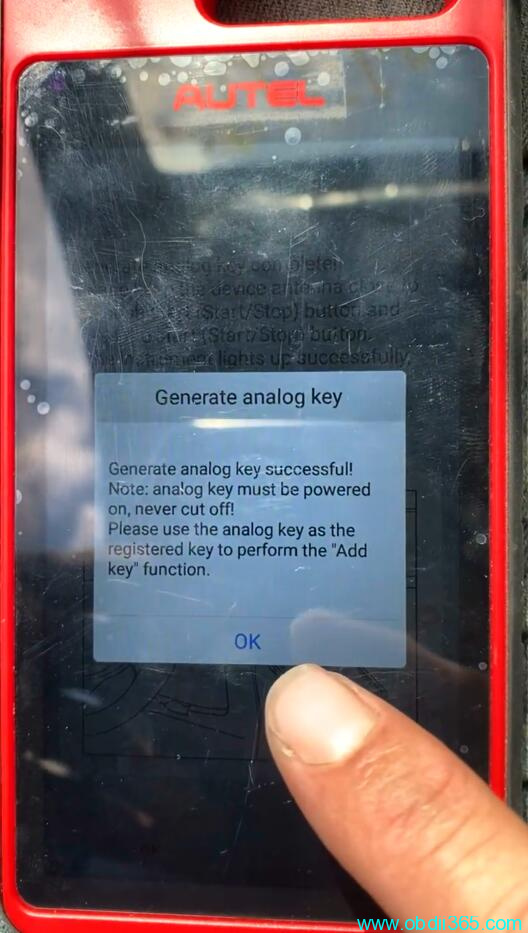 The analog key must be powered on. use the analog key as the registered key to perform Add key function.