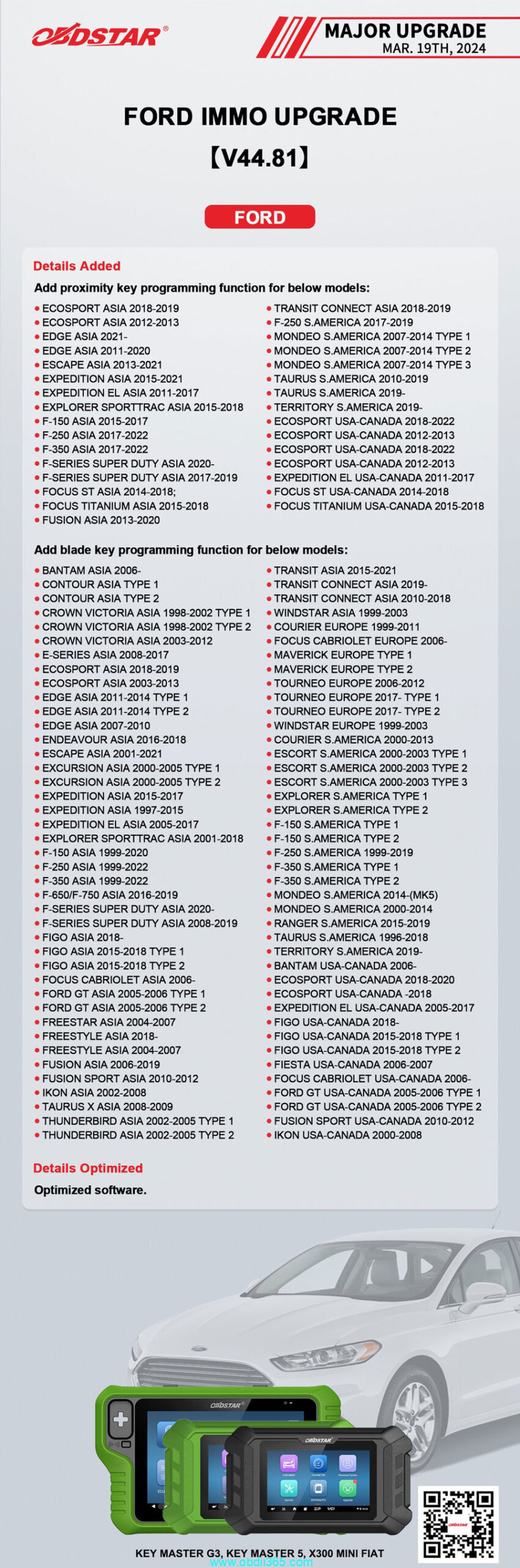 OBDSTAR X300 Classic G3 and X300 DP Plus release Ford IMMO software on March 19th, 2024.